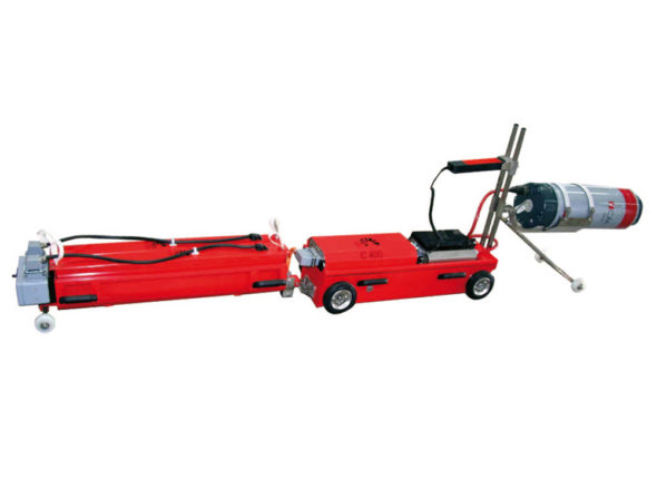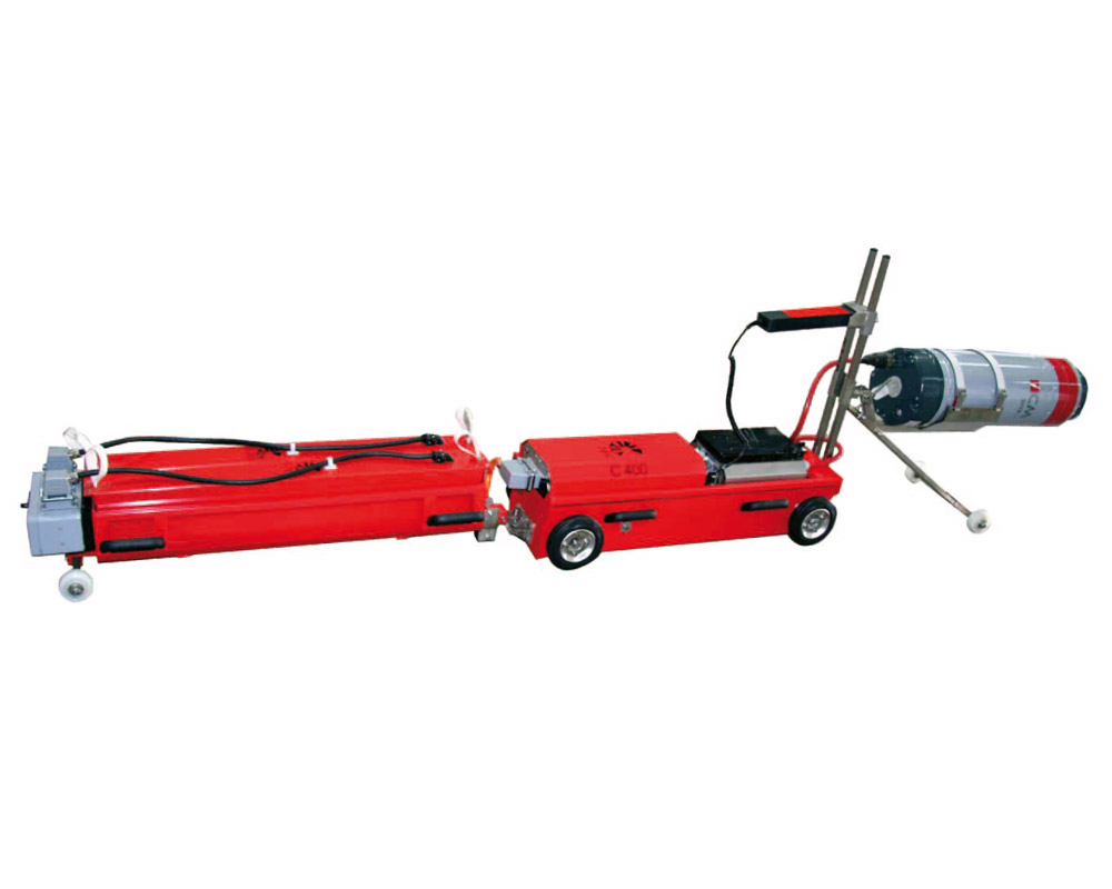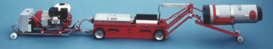 Der Andruck erfolgt durch das Eigengewicht sowie durch die Stützlast von Röhrenfahrwerk und Batterie- und Generatorwagen.